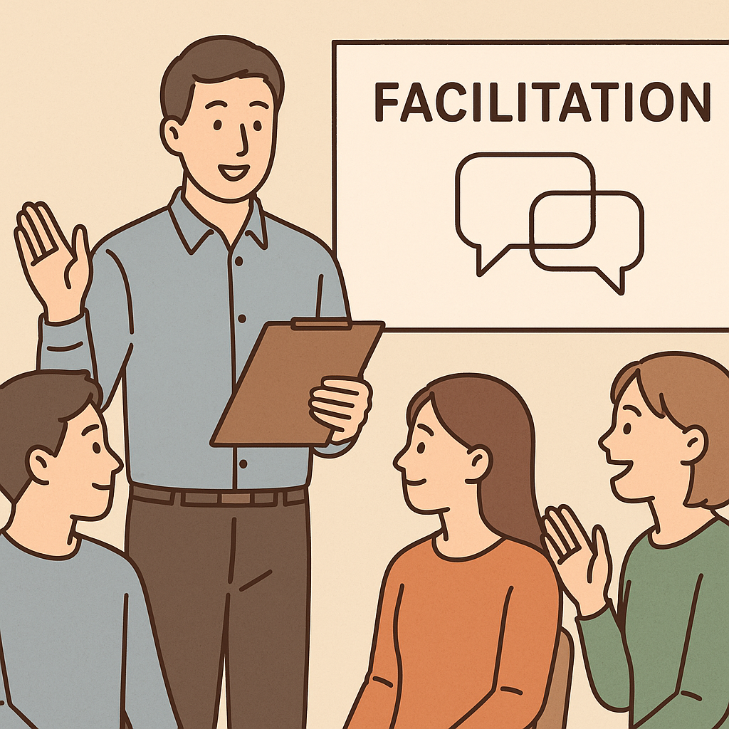 進行役は“正解をまとめる人”ではありません。一人ひとりの考えを受け止め、つなぎ、安心をつくる存在です。