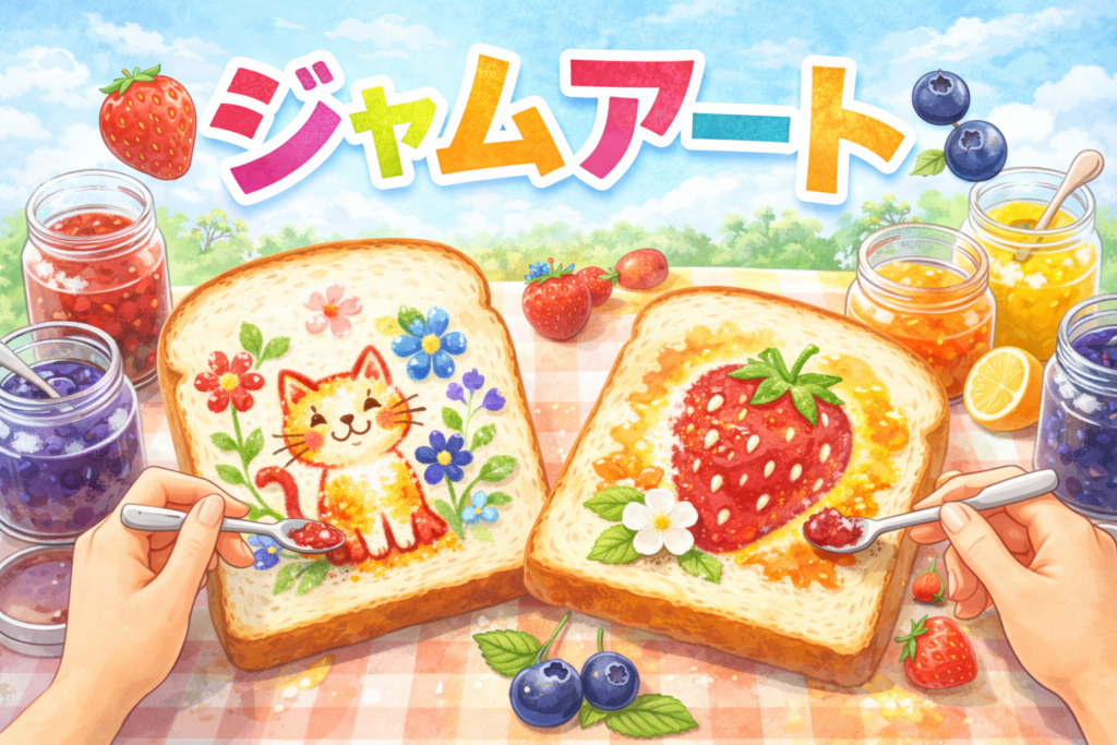 今週のイベントでは、パンをキャンバスに見立ててジャムで絵を描く「ジャムアート」を行います。いちごやブルーベリーなど色とりどりのジャムを使い、自由な発想でアートを楽しみながら、自分だけの作品を作ることができます。
