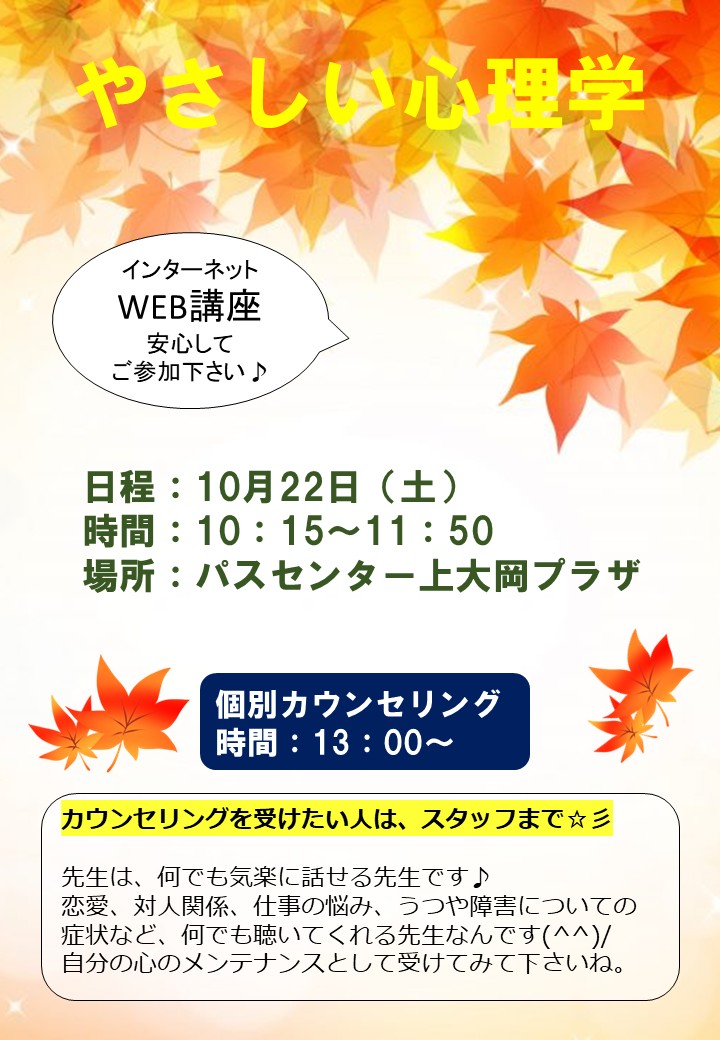 ☆10/27~11/1 パスセンター上大岡プラザスケジュール☆体験受付中!就労移行支援で気になるプログラムを体験してみませんか?
